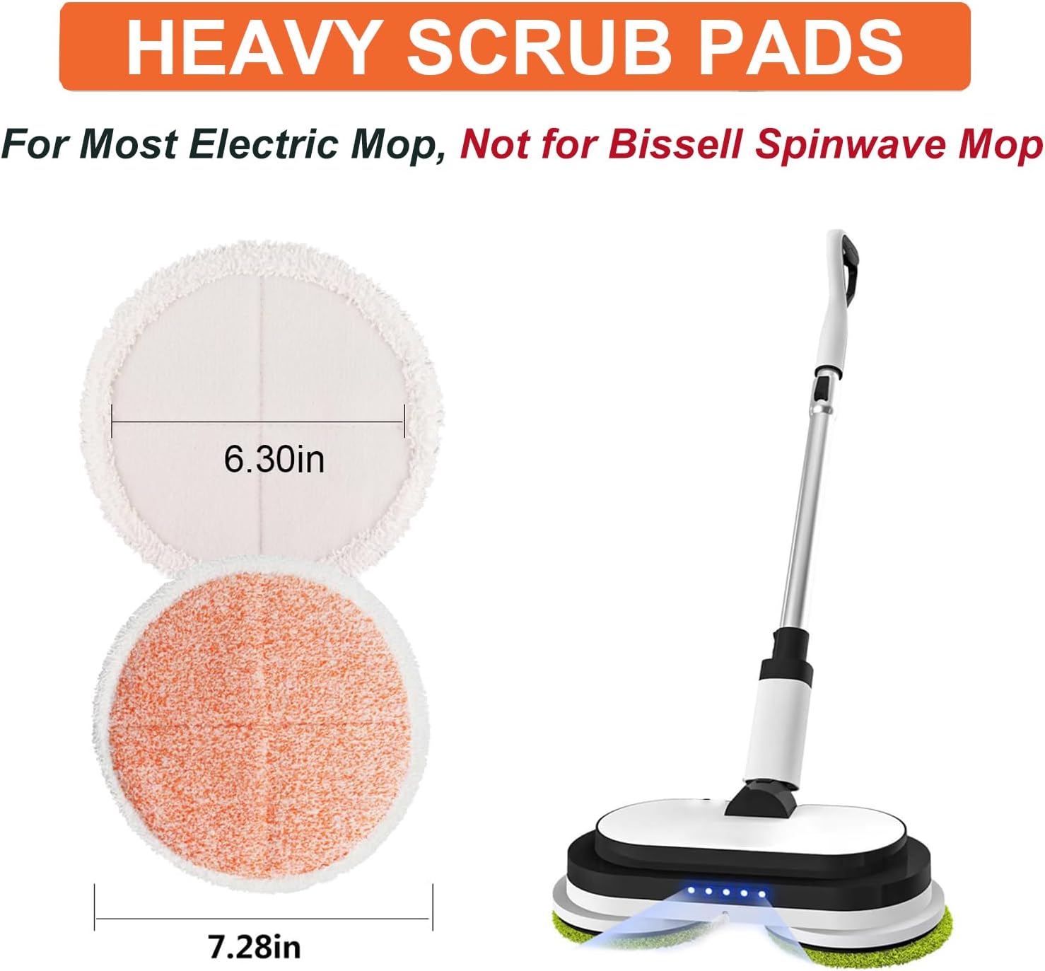 - Contains: 4 Pack Replacement Electric Mop Pads for Floor Cleaning, Size: 7.28in. Please check the size of your electric mop before purchasing (Not compatible with bissell spinwave mop)