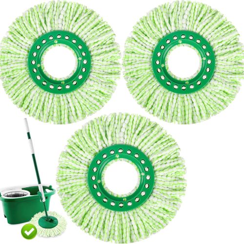 3 Pack Mop Heads Replacements Compatible with System Reusable Spin Mop Replace Head Washable Chenille Refills Dust Head Replacement for Floor Cleaning(Green)